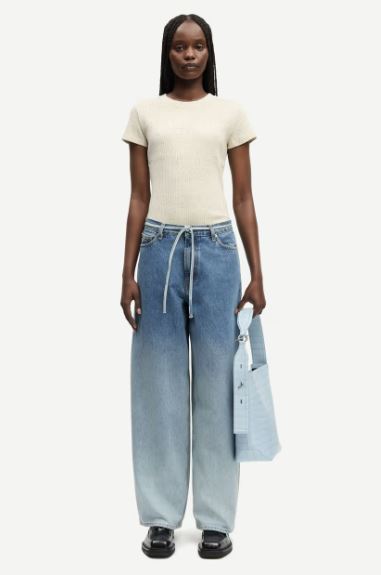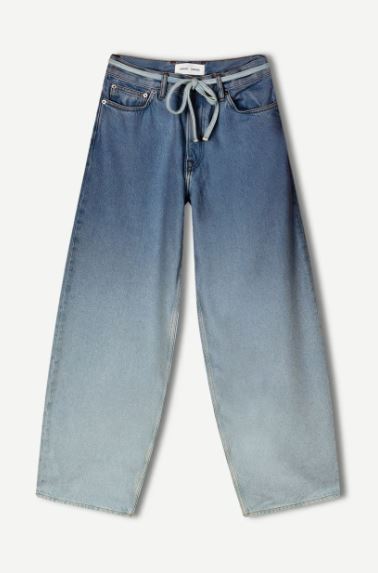 Jean en denim, coupe ample et jambes larges. Braguette boutonnée et zippée. Modèle à cinq poches. Matière principale en coton 100 % biologique.