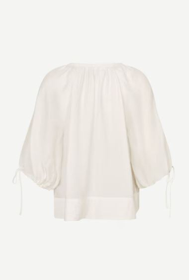 Oversize juste comme il faut, manches larges, tombé net. Il a cette allure un peu boyish qu’on adore, mais avec un twist inattendu. Quand vous vous retournez, le dos s’ouvre en une ligne verticale, discrète mais magnétique. Ce n’est pas un simple t-shirt blanc. C’est celui qui change tout.