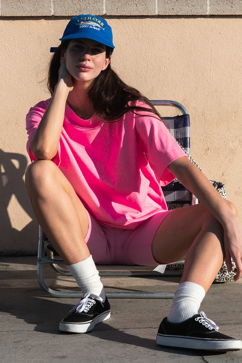 Rose vibrant, coupe ample, allure cool. Et au dos, ce print “Rio de Janeiro” qui sent le soleil, la mer et les fins de journée salées. Impossible de passer à coté de ce tee-shirt qui met tout de suite de bonne humeur.