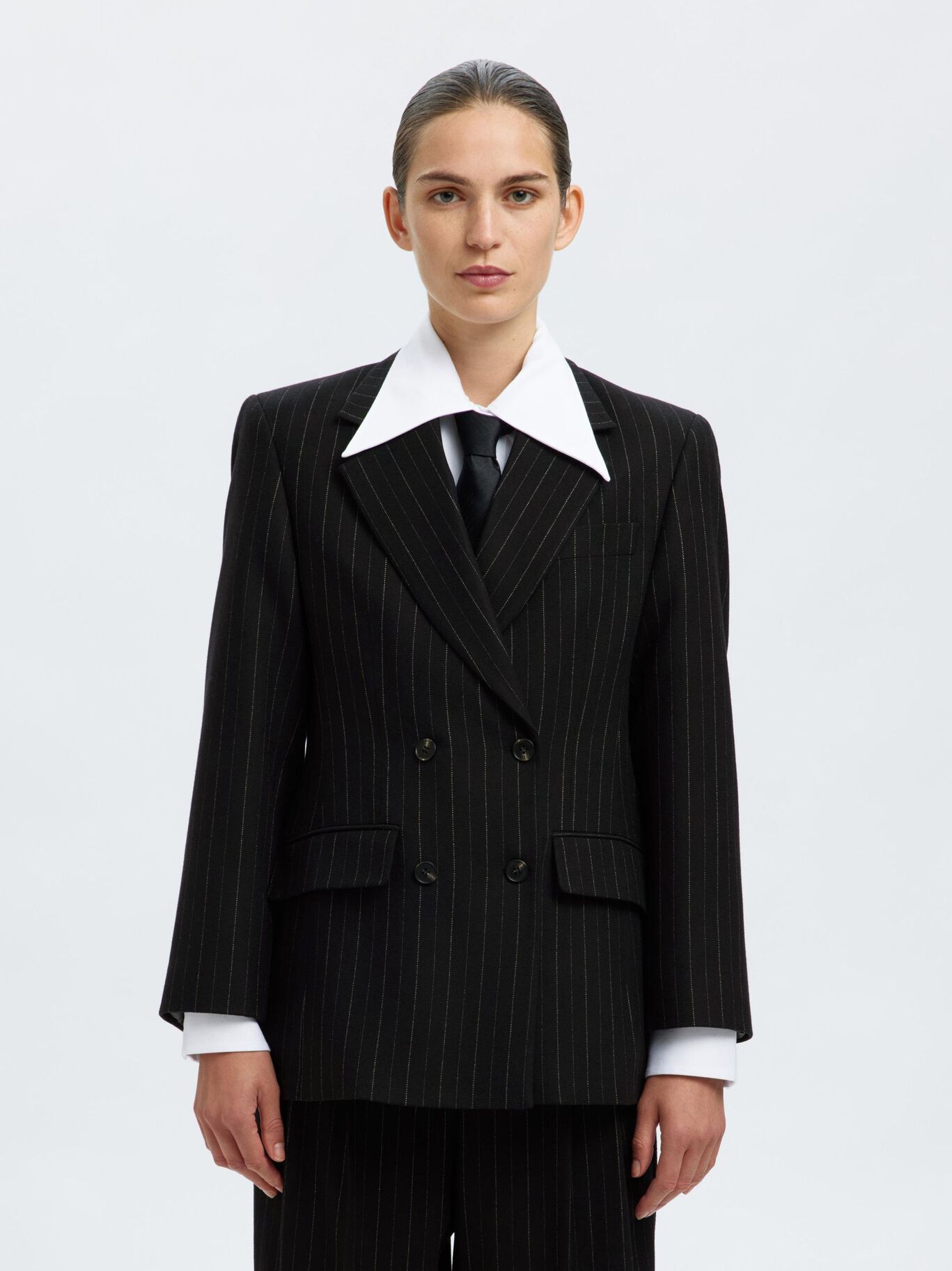 Pièce originale, imaginée et développée à Paris par Laure, Lulu et Nora. Découvrez notre Studio de Création.Sa coupe tailleur, dessinée avec justesse, apporte une allure assurée sans jamais faire trop habillée. Entièrement doublé d’un motif rayé qu’on devine à chaque mouvement, il joue entre codes classiques et esprit cool. On le porte sur un hoodie, un jean ou une chemise blanche : tout marche, et c’est ça qu’on aime.