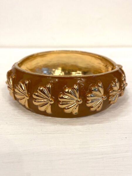 75,00€Le prix initial était : 75,00€.37,50€Le prix actuel est : 37,50€.Comme tous les joncs, il est facile à enfiler et à retirer. Vous le portez tout seul et il affiche son côté unique. Vous le portez avec d’autres joncs aux camaïeux de taupe et doré et il vivifie absolument. Sur la partie bombée du jonc un émaillage et aux fleurs de pétales dorées aux pistils de résine sur le pourtour du bracelet.