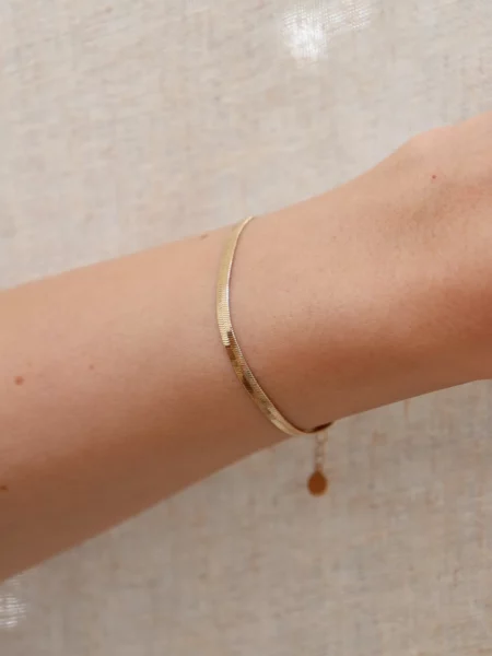Succombez à notre bracelet Arie et à sa maille Vénitienne. En plaqué or 3 microns.