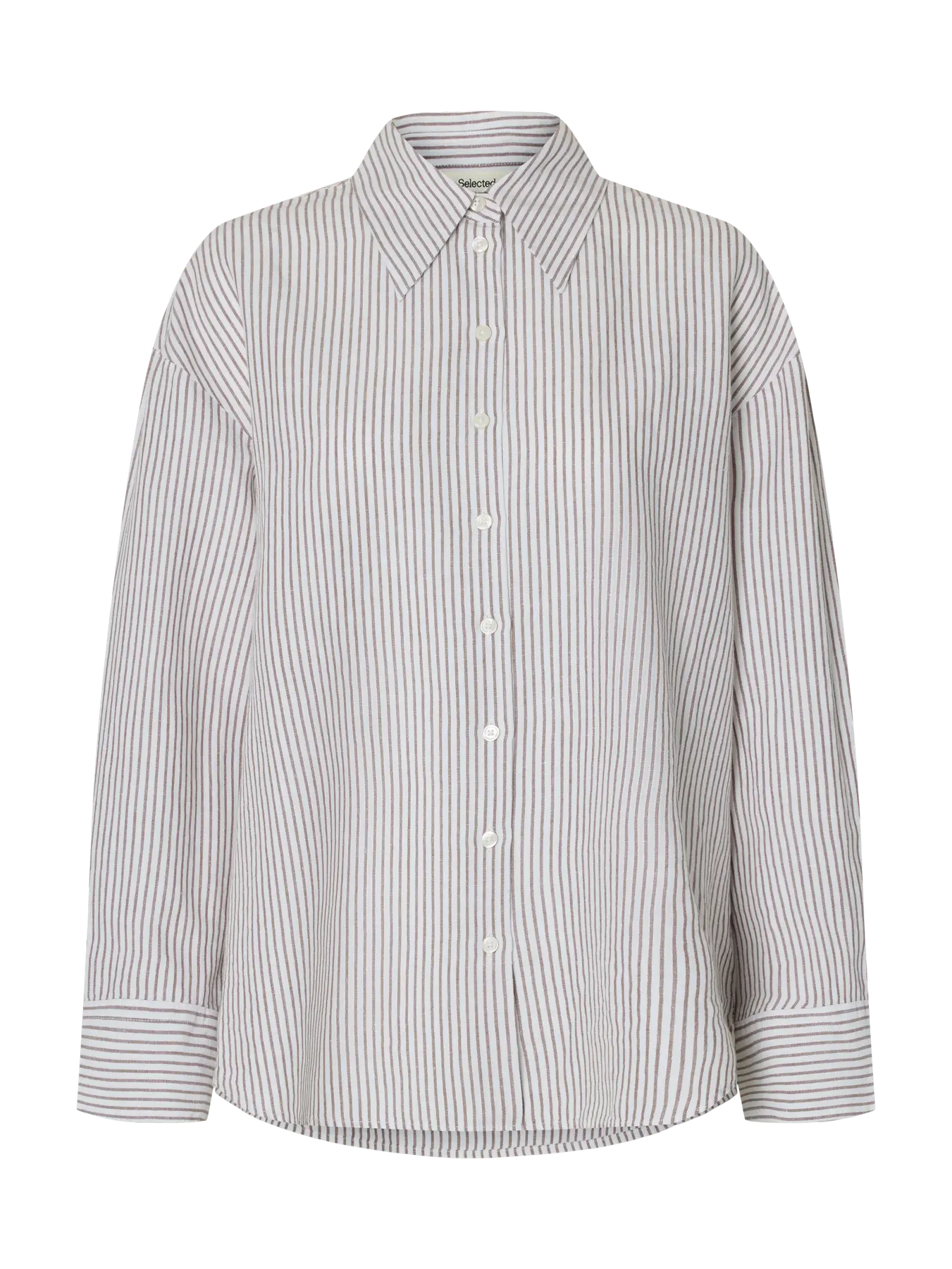 149,00€Chemise à manches longues en popeline de coton à rayures, coupe légèrement oversize inspirée du vestiaire masculin. Poche poitrine plaquée, col chemise classique, boutonnage apparent et poignets boutonnés pour une allure à la fois affirmée et décontractée.