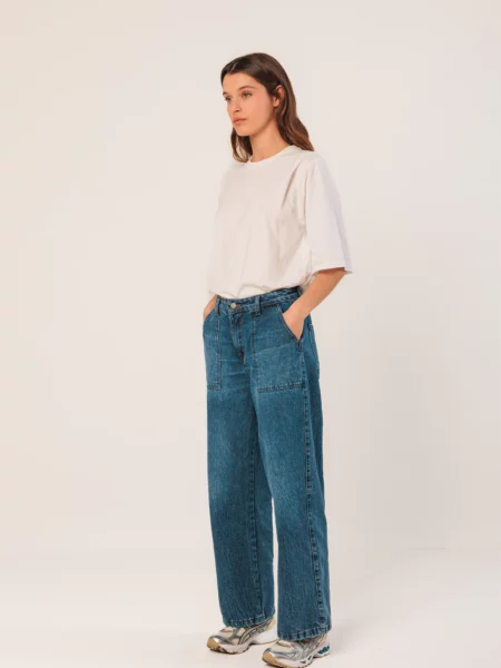119,00€• Taille haute avec passants de ceinture et fermeture zippée et à bouton • Poches avant et arrière plaquées • Pantalon wide leg • Tissu en coton et élasthanne avec finition ozone Made in Spain • Coupe décontractée : Conçue pour être légèrement ample • Taille: 36cm. Taille de la ceinture 33cm. Longueur de l’ébauche: 29,5cm. Longueur de l’entrejambe: 79cm.