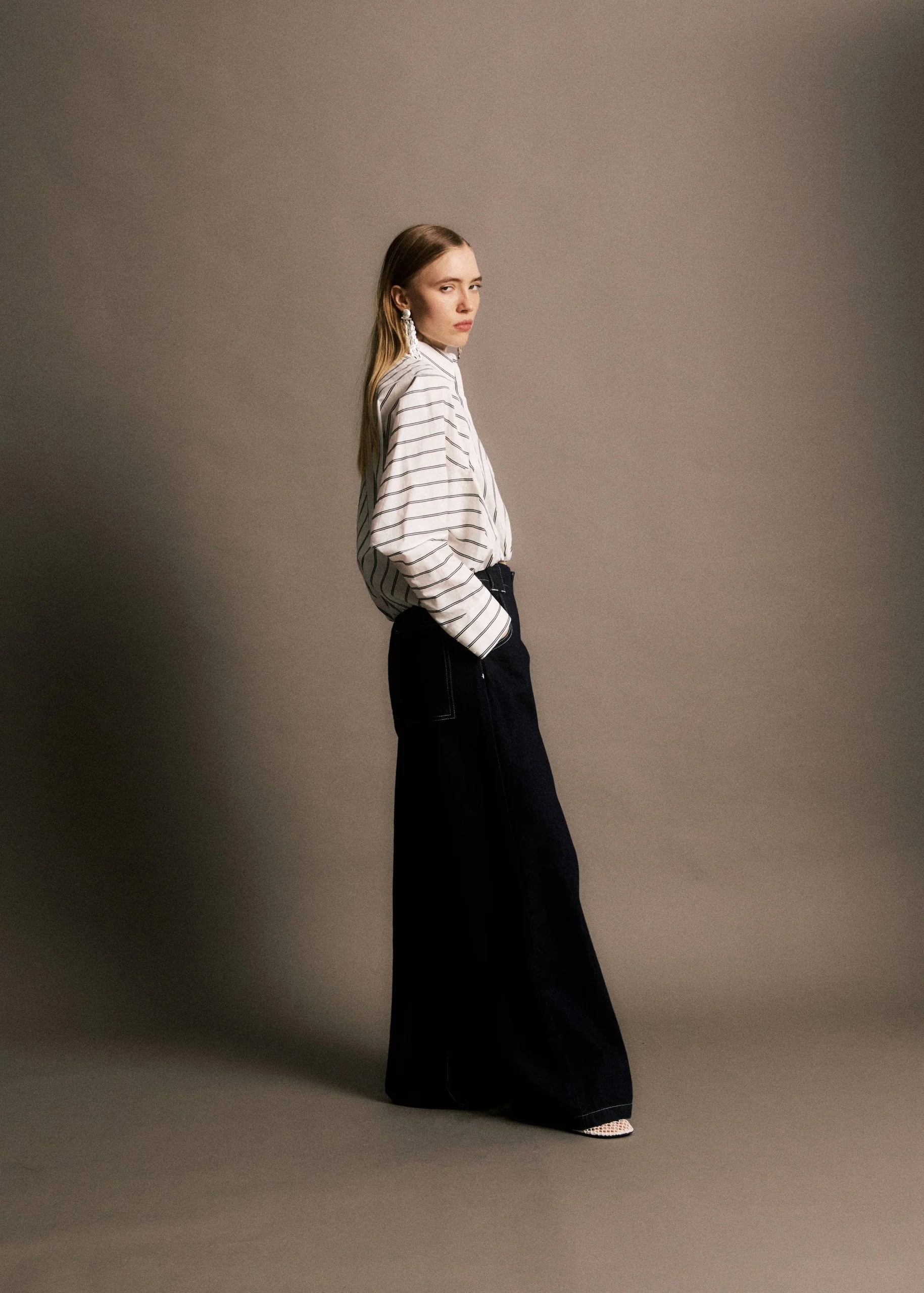 Jean taille haute à coupe évasée pour un style intemporel et structuré