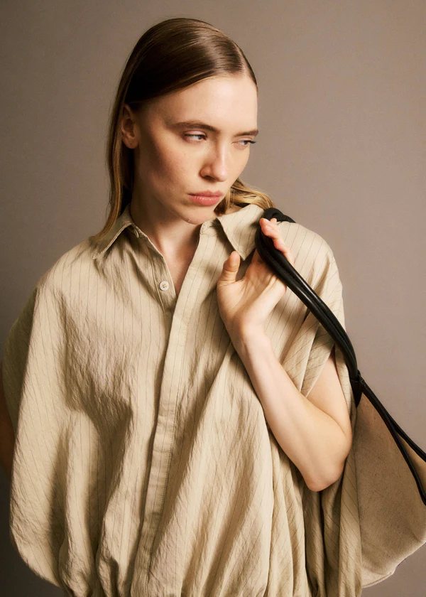 Chemise oversize en coton à rayures fines verticales avec fermeture boutonnée