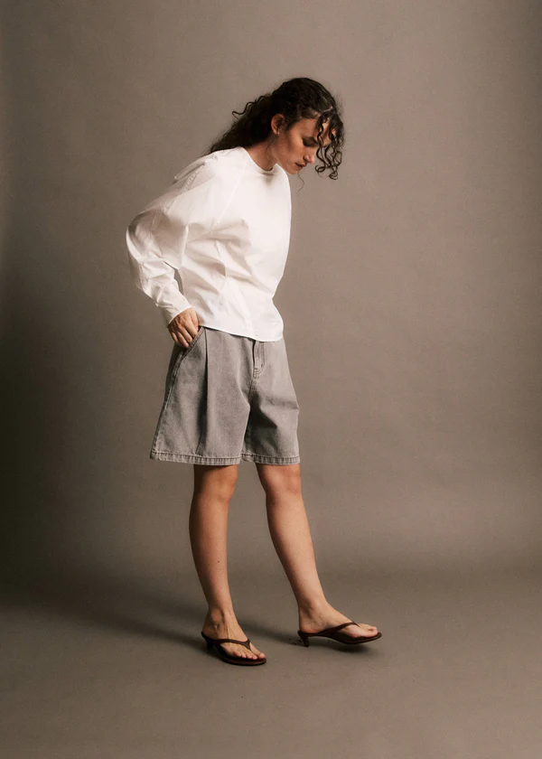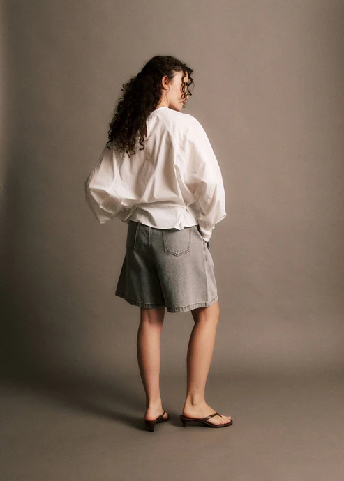 Veste en denim délavé à la coupe oversize et fermeture zippée centrale
