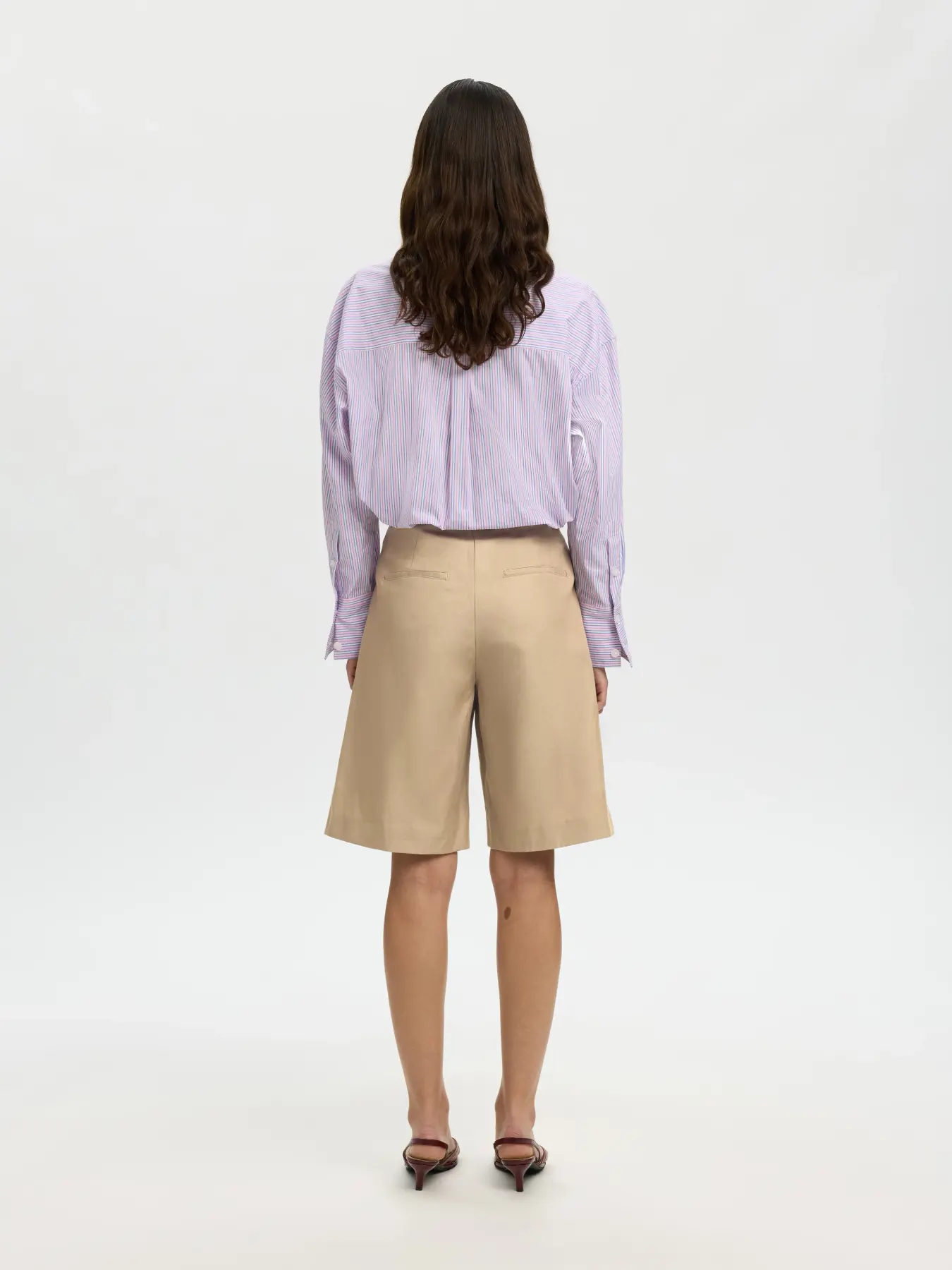 PANTALON FLUIDE TAYLOR – Taille haute ajustée avec fermeture éclair invisible et bouton – Longueur de la taille : 80 cm – Coupe ajustée à la taille et évasée à l’ourlet