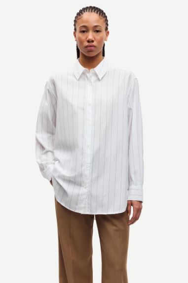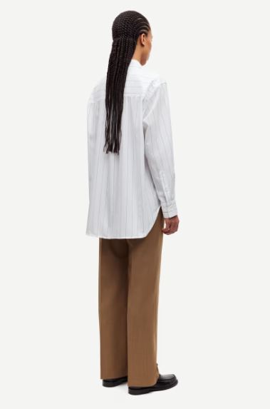 Chemise à fines rayures et manches longues, coupe ample et emmanchures basses. Fermeture boutonnée sur le devant et poignets boutonnés. Empiècement de l’encolure avec plis. Matière principale en mélange de coton.