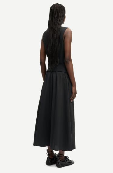 Cette longue jupe plissée est en jersey avec un effet fluide flottant. La taille élastique de cette jupe plissée au-dessus du genou lui donne une allure simple et épurée.