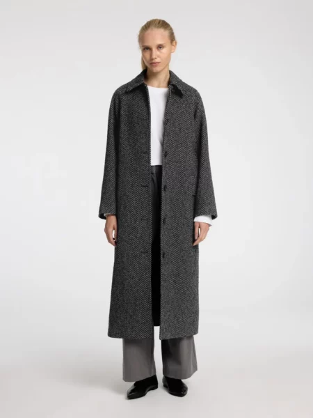 Le manteau de laine emblématique est de retour, plus cute que jamais. Fabriqué en laine recyclée de haute qualité, il est exceptionnellement chaud et durable. Son design intemporel à double boutonnage le rend parfait pour des occasions plus formelles. Utilisez une ceinture en cuir pour cintrer la taille et complétez le look avec un pantalon large et un col roulé côtelé. – Double boutonnage – Grand revers cranté – Poches latérales soudées – Doublure intégrale – Coupe structurée