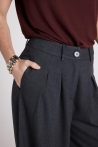 Pantalon de tailleur décontracté avec plis à l’avant. Passants de ceinture, poche avec détail passepoilé à l’arrière. Tissu en mélange de polyester et polyester recyclé avec une touche de stretch.