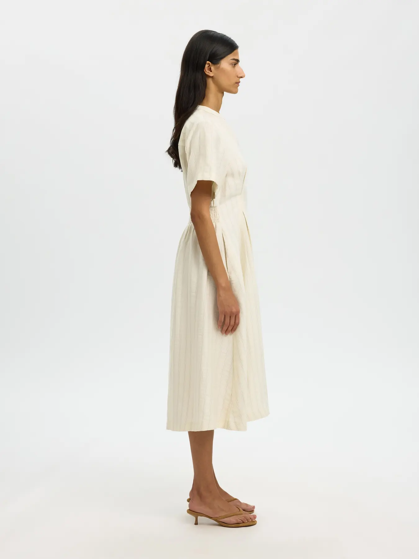 Voilà la robe que vous cherchiez. Notre robe longue à bretelles est réalisée en coton biologique et a une coupe empire avec un nœud dans le dos et des poches latérales cachées.