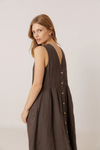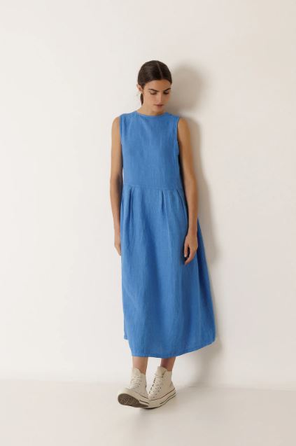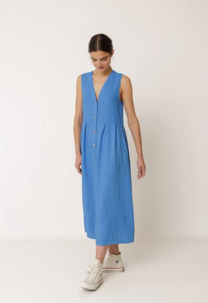 • Col en V : multiposition • Épaules cintrées • Fermeture à boutons • Coupe à la taille avec plis décoratifs • 100 % lin • Poche • Coupe décontractée : pensée pour un porté légèrement ample • Mesures à plat pour la taille S : Longueur depuis les épaules : 125 cm. Largeur de poitrine : 45 cm. Largeur du bas : 84 cm