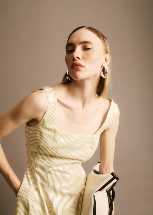Robe courte à bretelles en jersey avec une coupe slim. Décolleté droit, fines bretelles, bords gansés. Jersey en polyester recyclé avec élasthanne extensible. Ce produit est certifié GRS. Chaque étape de la chaîne d’approvisionnement a répondu à des exigences sociales, environnementales et chimiques strictes.