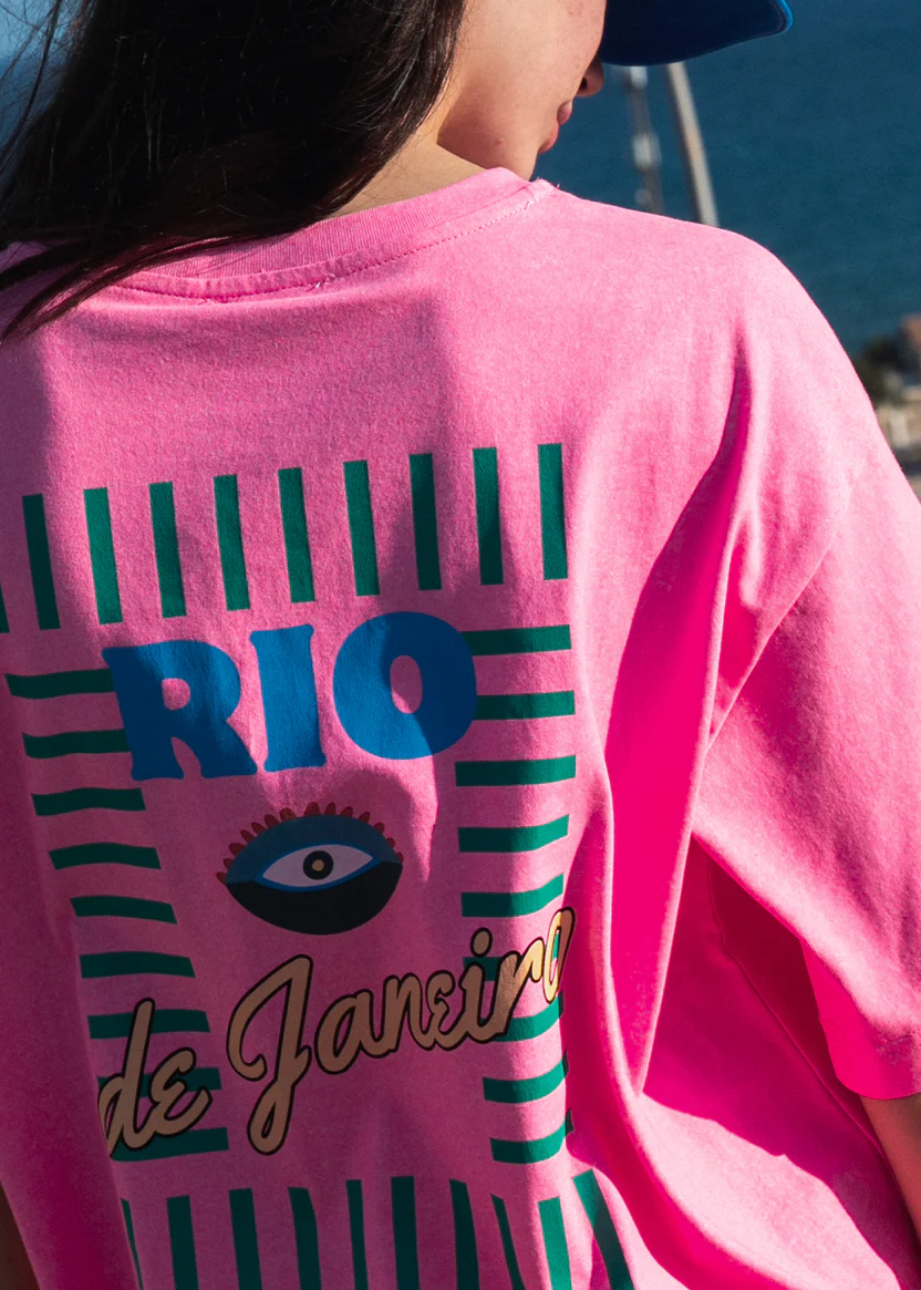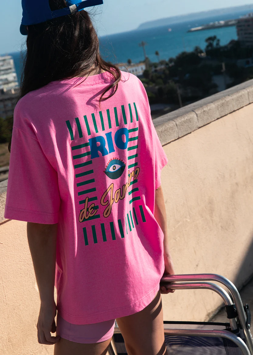 Rose vibrant, coupe ample, allure cool. Et au dos, ce print “Rio de Janeiro” qui sent le soleil, la mer et les fins de journée salées. Impossible de passer à coté de ce tee-shirt qui met tout de suite de bonne humeur.