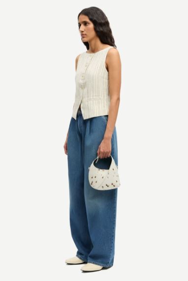 Gilet sans manches tissé à la coupe regular. Fermeture boutonnée sur le devant, encolure ronde. Poches passepoilées à l’avant. Doublure principale 100 % coton. Matière principale 100 % lin.