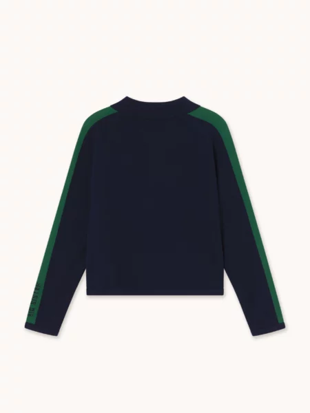 139,00€Polo en laine mérinos extra-fine sur fond bleu marine profond. Rayures vert bouteille le long des manches pour un look sophistiqué avec une touche sportive subtile. Col classique et finitions côtelées. Associez-le au pantalon assorti pour une tenue coordonnée. Conçu