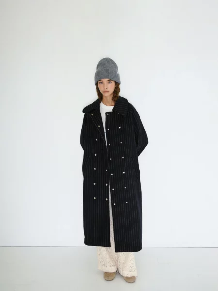319,00€Confectionné en laine mélangée avec un motif à rayures tissées subtiles, ce manteau long présente un col classique, des poches passepoilées et une fermeture croisée avec boutons-pression métalliques. Il est également doté d’une poche poitrine intérieure. Les manches raglan et les pinces au dos ajoutent du confort, tandis que l’intérieur entièrement doublé apporte une finition soignée à cette pièce intemporelle.