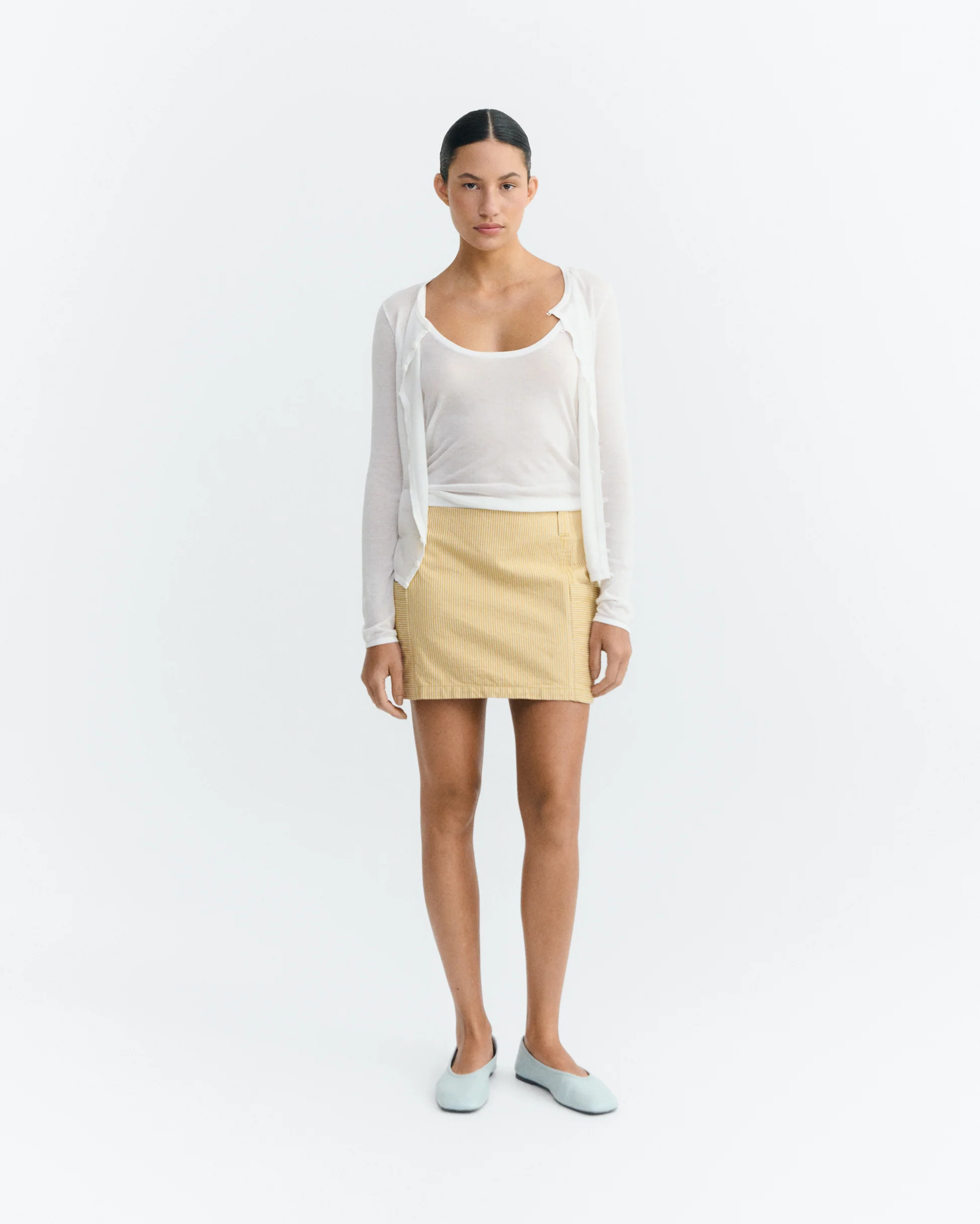 119,00€Un esprit chemise d’été, facile et lumineuse. Les rayures jaunes apportent tout de suite de l’éclat, adoucies par un tissu léger au tombé fluide. La coupe est droite, légèrement ample, avec des épaules souples qui donnent une allure décontractée mais soignée. Portée rentrée dans un jean clair ou laissée libre sur un pantalon écru, elle fonctionne aussi bien en journée qu’en fin de journée, manches retroussées pour encore plus de nonchalance.
