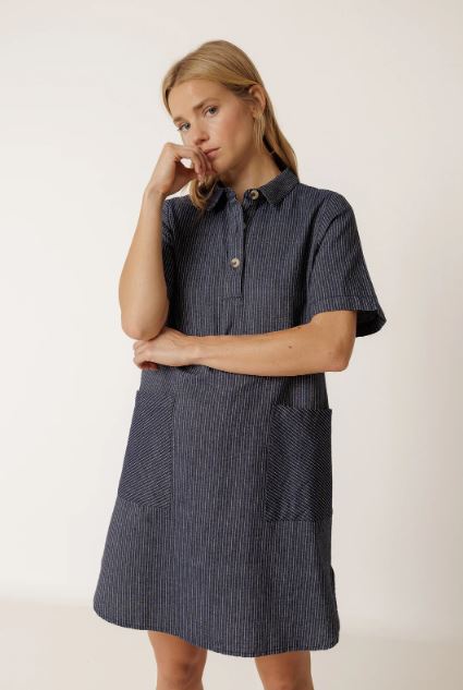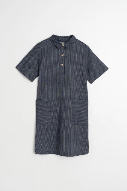 95,00€Robe Col polo avec fermeture à boutons. • Manches courtes et maxi-poches plaquées. • Petites ouvertures latérales dans le bas. • Tissu rayé en coton biologique. • Coupe décontractée : conçue pour un porté légèrement ample. • Mesures de la taille S à plat : Longueur à partir des épaules: 90cm. Largeur du buste: 51cm. Largeur du bas: 59cm.