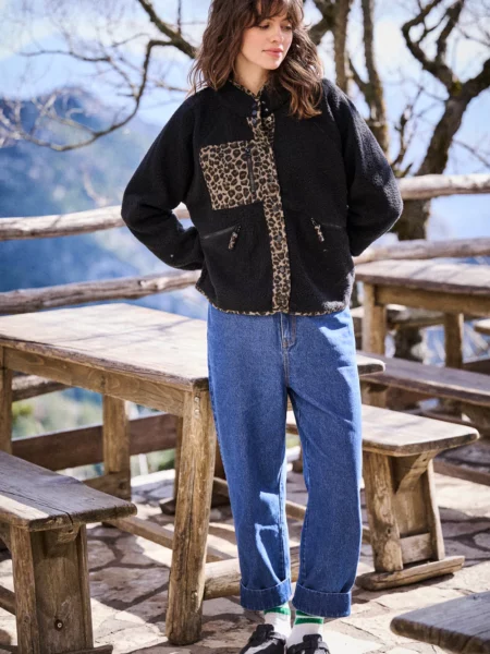 Elle se porte facilement en extérieur comme en intérieur, sur un jean ou une jupe, toujours avec la même allure cool.- • Veste polaire avec détails en imprimé léopard