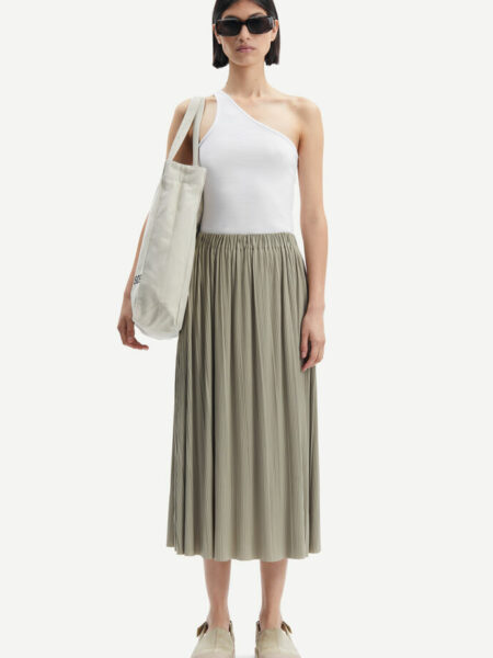 Cette longue jupe plissée est en jersey avec un effet fluide flottant. La taille élastique de cette jupe plissée au-dessus du genou lui donne une allure simple et épurée.