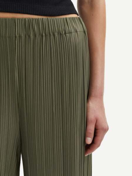 Pantalon jambe large coupe décontractée avec taille élastiquée. Poches latérales intégrées aux coutures. Tissu en jersey finement plissé, mélange de polyester recyclé.