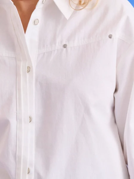 Pièce originale, imaginée et développée à Paris par Laure, Lulu et Nora. Découvrez notre Studio de Création.Une chemise blanche à l’esprit cowgirl urbain.