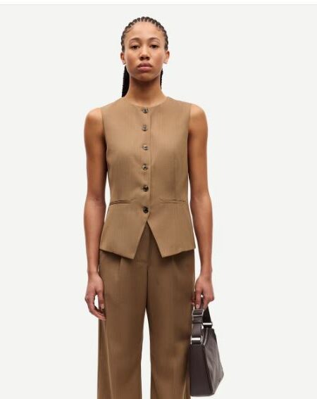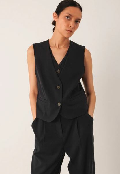 150,00€Gilet sans manches, coupe regular. Fermeture boutonnée sur le devant. Fausses poches passepoilées sur le devant. Col rond. Fente d’aisance dans le dos. Matière principale : mélange de polyester recyclé et de laine.