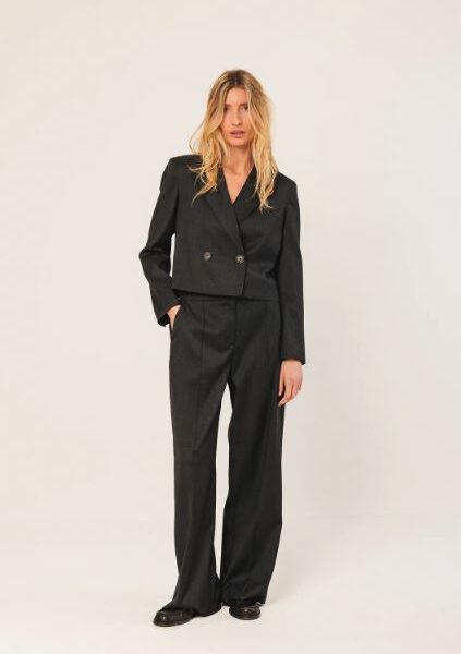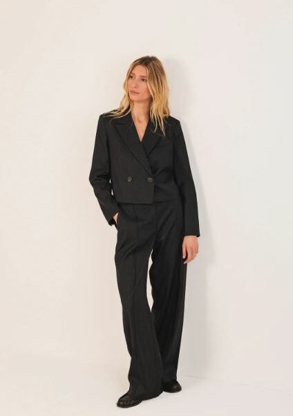 Lulu a souhaité placer deux plis pile là où il faut : le long de la patte de boutonnage, afin de souligner la ligne et moderniser le style. -