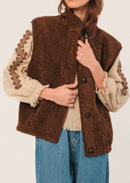 125,00€Gilet en laine tricotée marron Kaia