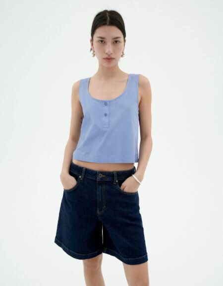60,00€Le prix initial était : 60,00€.30,00€Le prix actuel est : 30,00€.Top bleu Justine en coton biologique