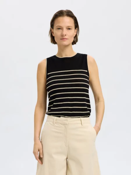 Pièce originale, imaginée et développée à Paris par Laure, Lulu et Nora. Découvrez notre Studio de Création.» Un esprit bord de mer souffle sur ce débardeur en maille rayée. Une maille douce et texturée, une coupe flatteuse, un jeu de rayures intemporel… Ce top en maille coche toutes les cases du coup de cœur estival. Facile à associer, il se marie aussi bien avec un short qu’une jupe longue légère. »