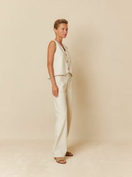 115,00€Le prix initial était : 115,00€.57,50€Le prix actuel est : 57,50€.Short court à rayures bicolores verticales, confectionné en gaze de coton tissée en France. Sa taille élastiquée, ajustable par un cordon, assure un confort optimal. Les poches discrètes dans la couture et le bas de vêtement biaisé dans la matière apportent une finition soignée. Une pièce légère et facile à porter