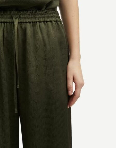 159,00€Le prix initial était : 159,00€.79,50€Le prix actuel est : 79,50€.Pantalon taille mi-haute en satin, coupe regular. Fermeture zippée et à crochet invisible sur le devant. Poches latérales fendues sur le devant et une poche passepoilée à l’arrière. Plis simples sur le devant. Passants de ceinture. Matière principale en polyester 100 % recyclé. Ce produit est certifié GRS. Chaque étape de la chaîne d’approvisionnement a répondu à des exigences sociales, environnementales et chimiques strictes.