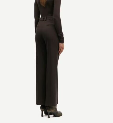 169,00€Le prix initial était : 169,00€.84,50€Le prix actuel est : 84,50€.Pantalon taille mi-haute, coupe classique et jambes évasées. Braguette invisible, boutonnée et zippée. Poches latérales fendues à l’avant et fausses poches passepoilées à l’arrière. Passants de ceinture. Plis pressés à l’avant et à l’arrière. Matière principale : mélange élastique à base de polyester recyclé.