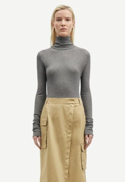 79,00€Le prix initial était : 79,00€.39,50€Le prix actuel est : 39,50€.Haut à manches longues, coupe ajustée. Col roulé. Matière principale : mélange de viscose LENZING™ ECOVERO™ et de laine. Ce produit contient de la viscose LENZING™ ECOVERO™ certifiée par l’écolabel européen d’excellence environnementale pour les produits textiles (licence n° AT/016/001).